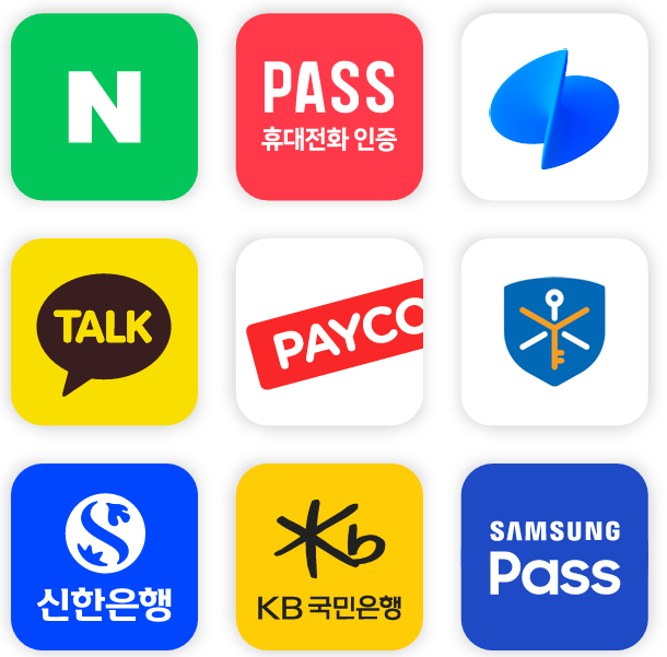 본인인증 방법은 모두 무료이며, NICE 신용평가정보와 KG이니시스에서 제공합니다.